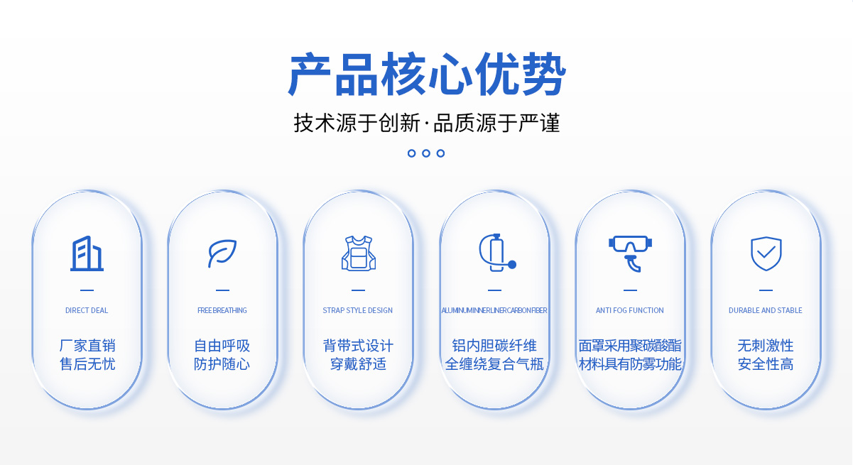 氣瓶容積 | 氣瓶工作壓力 | 最大供氣流量 | 呼吸阻力 | 報(bào)警壓力 | 整機(jī)重量 (最輕配置) | 參考使用時(shí)間 | ||