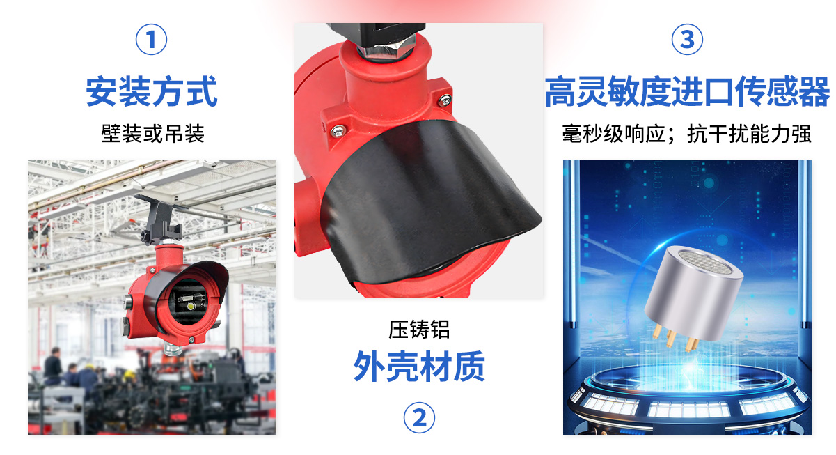 | 指示燈狀態(tài) | 預(yù)熱黃色常亮;正常檢測綠色常亮;預(yù)警黃色閃亮;報警紅色常亮 |